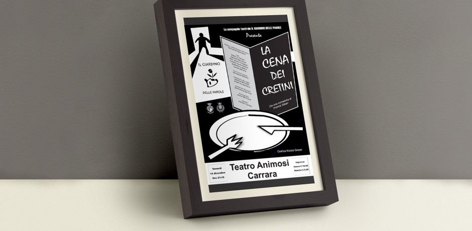 Locandina realizzata per lo spettacolo messo in scena da “Il giardino delle parole”: “La cena dei cretini”.
